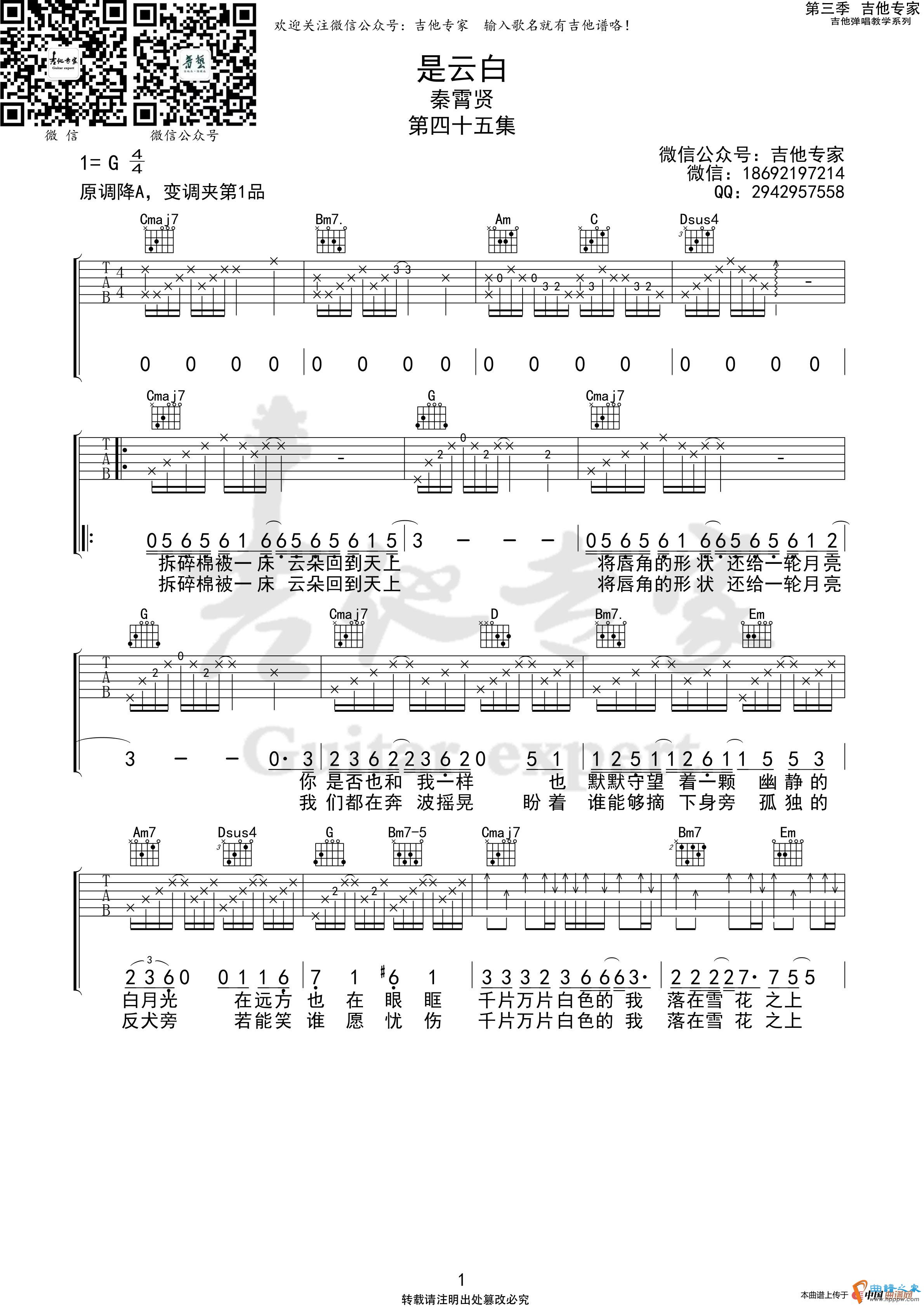 是云白 吉他谱