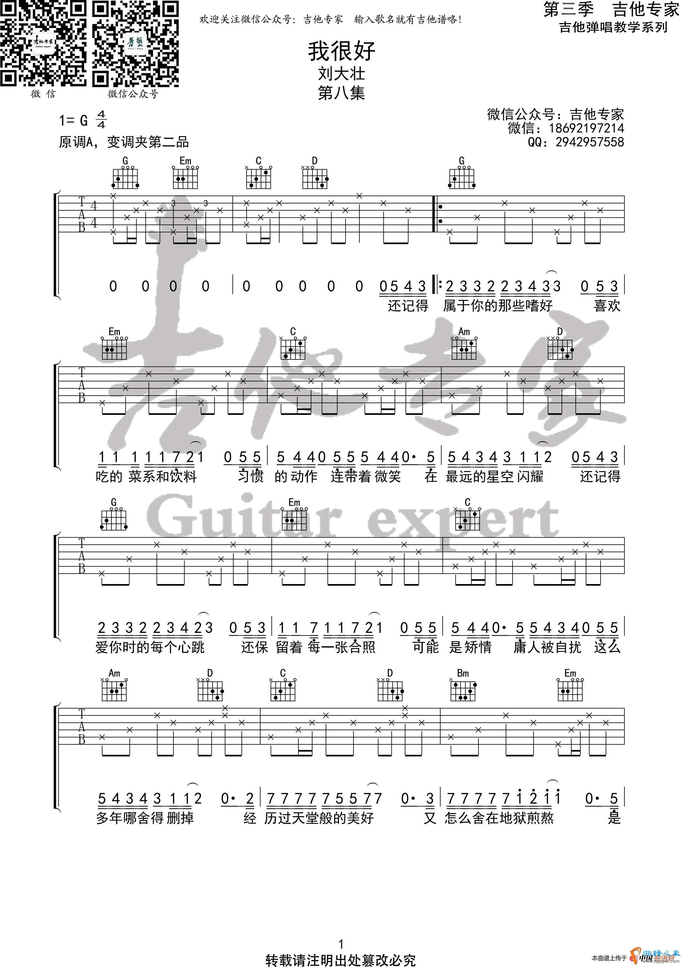 我很好 原版吉他谱