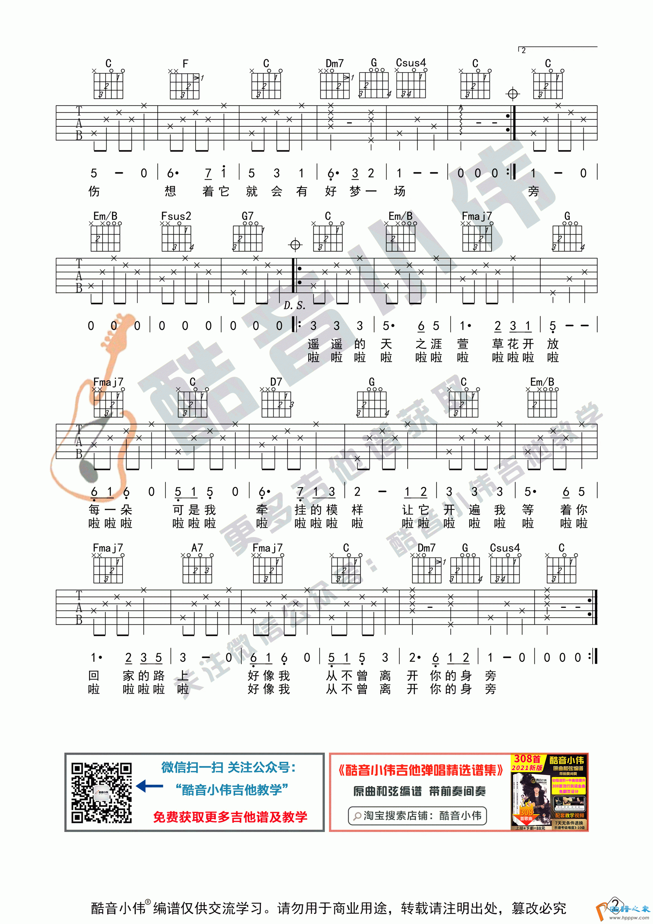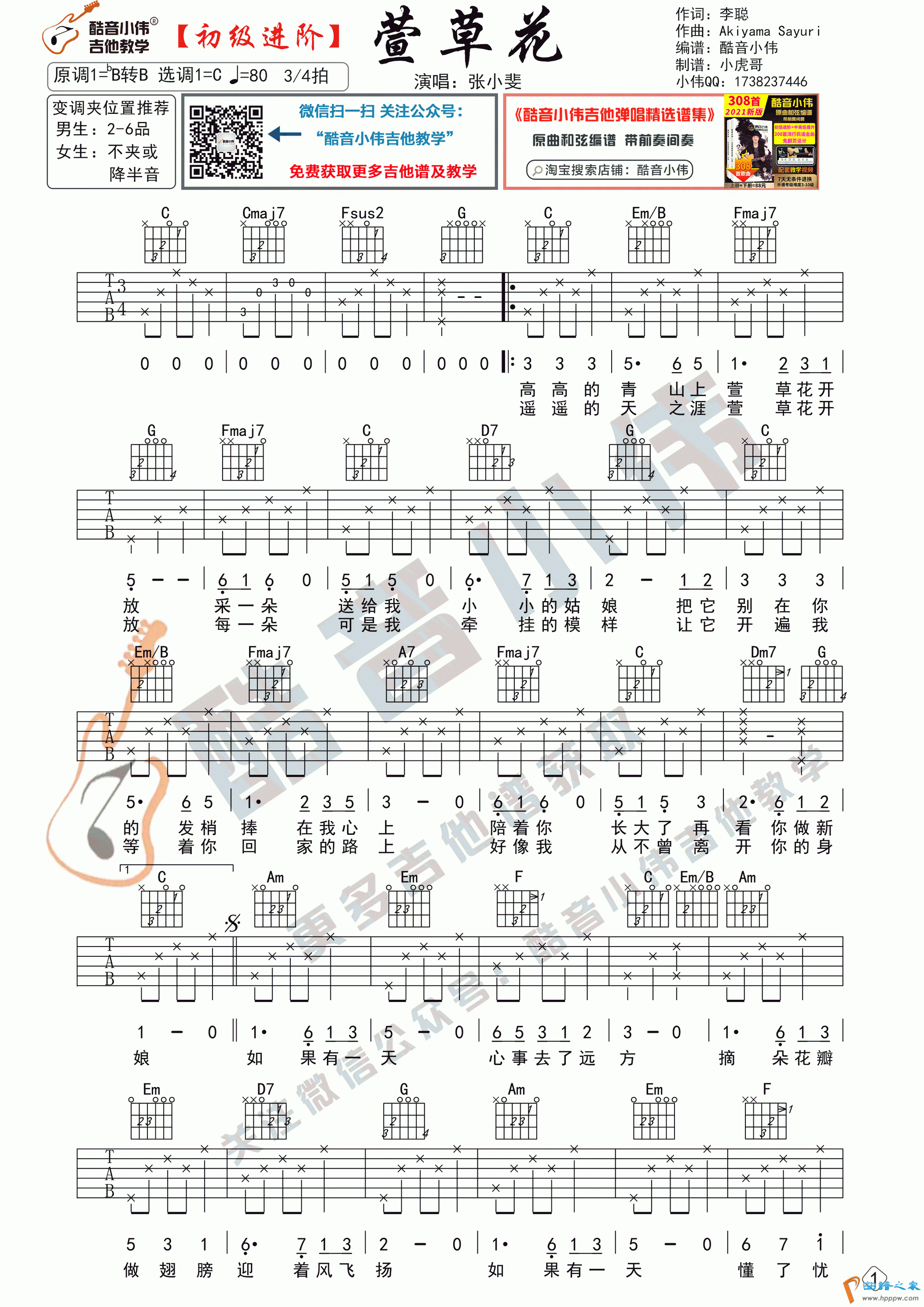 《萱草花》吉他谱初级进阶(酷音小伟吉他教学)