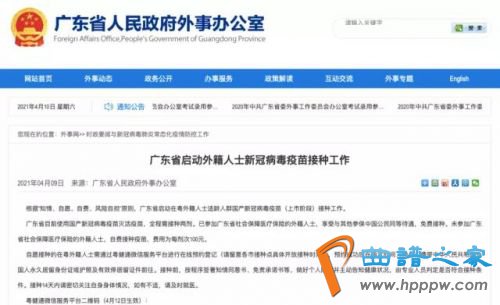 4月9日,据广东省人民政府外事办公室官网消息,根据“知情、自愿、自费、风险自担”原则,广东省启动在粤外籍人士适龄人群国产新冠病毒疫苗(上市阶段)接种工作(“粤健通”微信服务平台二维码4月12日生效)。