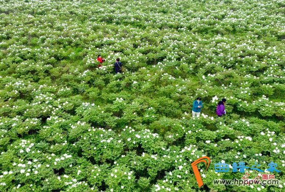 2021年4月11日,暮春时节,安徽省亳州市谯城区种植的药牡丹盛开,花香袭人,白色的药牡丹花成为药都乡间一道美丽的春景。(刘勤利摄/光明图片)