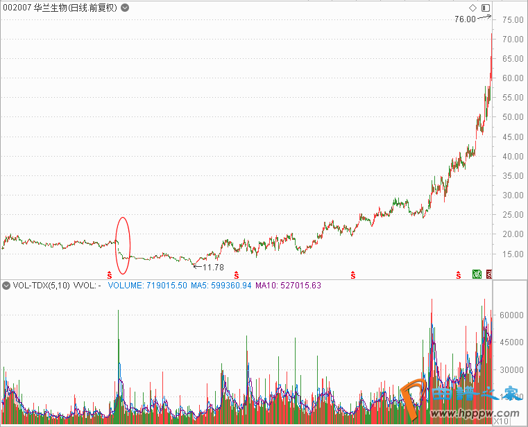 举个例子,大白马华兰生物在2017年7月出现业绩爆雷,当时机构只看到眼前一面,全然不顾公司的长远前景,疯狂出逃,股价出现快速下行。由于业绩爆雷只是个短期因素,不改行业长期向好趋势,后来股价创出了历史新高,涨了很多倍。
