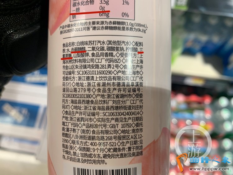 △超市货架上,一款标注为“无糖苏打水”的饮料,配料中同样含有其他糖类成分。