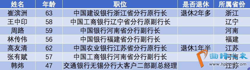 今年来至少7名大行分行高管落马,其中2人退休被查