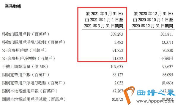 中国联通一季度移动出账用户数3.09亿,比2020年末增加348.2万户。而2020年第四季度中国联通移动出账用户数是减少337.1万户。此外,一季度中国联通5G套餐用户达9185.2万户,净增2102.2万户。