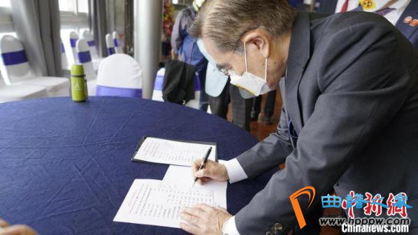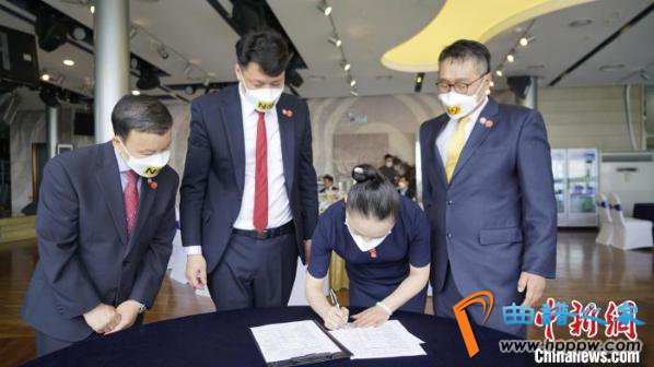 图为中韩民间团体代表在联合声明上签字。 曾鼐 摄