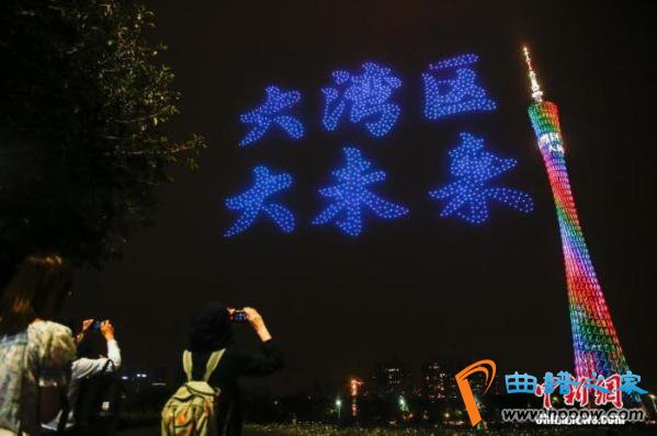 4月19日晚,1000架无人机组成的天幕光影秀在广州海心沙上空上演,用科技的方式描绘“大湾区、大未来”。中新社记者 王骏 摄