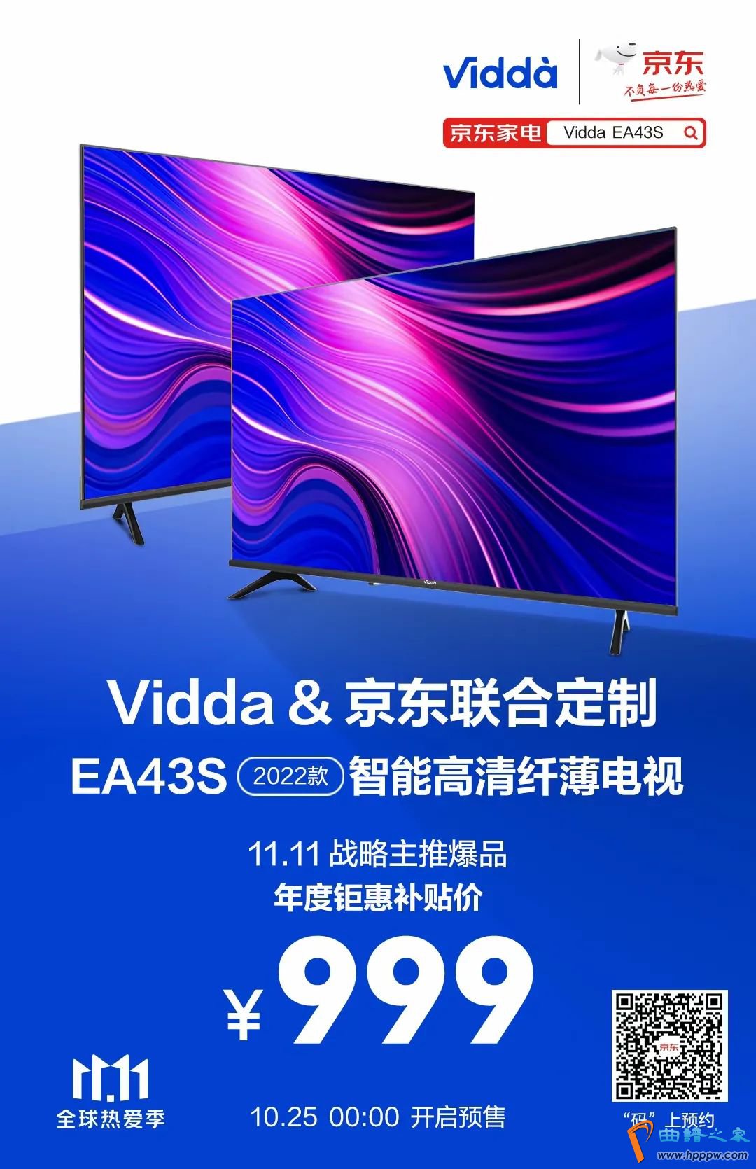前面提到的霸榜天猫好评榜达两周的Vidda 43V1F-R,拥有全高清低蓝光护眼效用,双11得手价不高于1249元,不愧是佛系青年必买机型。而京东年度钜惠补贴机型Vidda EA43S 2022款于10月25日0时以999元开启预售。该机由Vidda和京东结合定造,智能高清纤薄安排,抢到即是赚到!