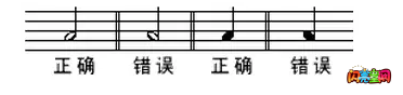 3、还要谨慎一点:符干朝上的光阴,符干要画正在符头的右边,符干朝下时,符干要画正在符头的左边,必定不行画错。