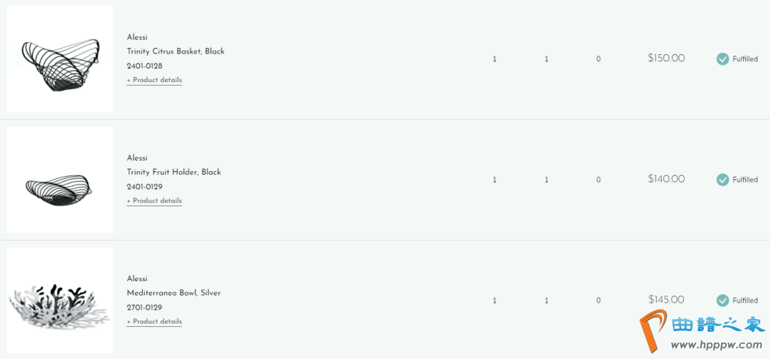 清单上显示帕丽斯枚举了Alessi的两款果篮:灵感来自鹦鹉螺弯曲螺旋构造的Trinity Citrus Basket和珊瑚造型的Mediterraneo Bowl,它们的表形毫无疑难万分摩登前卫。
