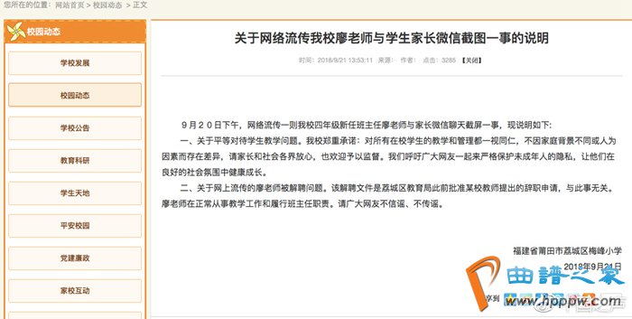下昼,涉事的莆田市荔城区梅峰幼学正在其官方网站宣布音尘,该解聘文献是荔城区培植局此前接受某校西席提出的退职申请,与此事无闭。廖师长正在寻常从事教学作事和实施班主任职责。