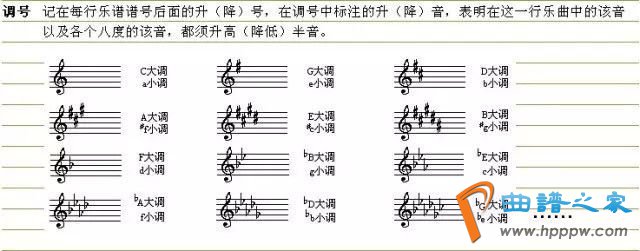 调号是指紧跟正在谱号后面的“#”升号或者“b”降号,每首笑曲都肯定具有一个调号。