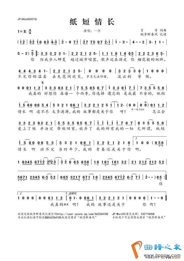 纸短情长简谱数字!比来抖音上有良多人都正在传这个数字简谱,由于纸短情长正在旧年照旧一首爆红的歌曲,以是这首歌的数字简谱也是让这首歌再次火了起来,下面咱们来看看吧!