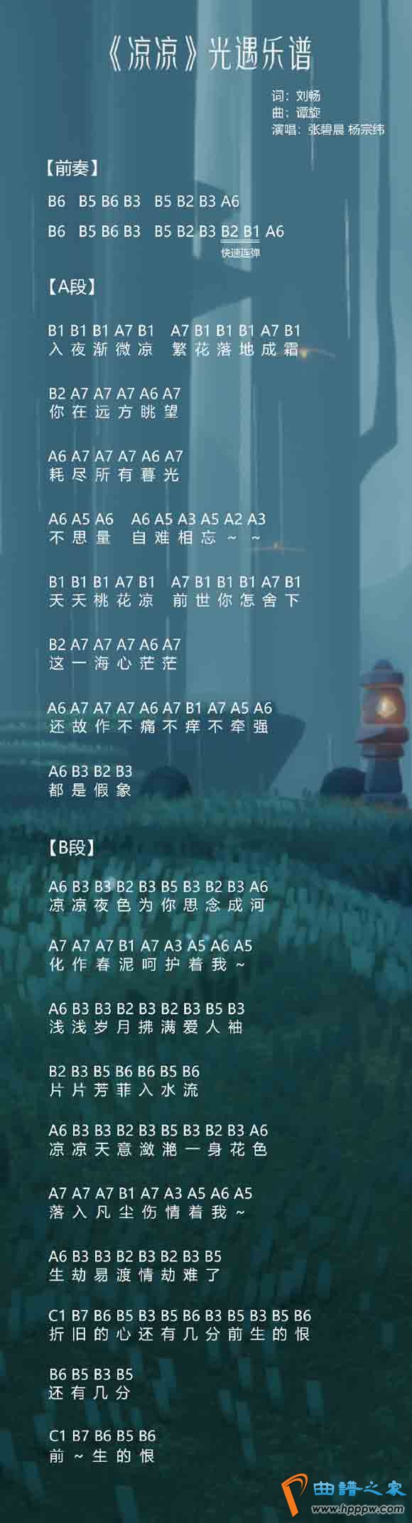 - 光遇凉凉数字简谱光遇凉凉曲谱竖琴