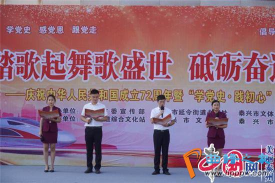 中国网美丽泰州讯 阅享百年党史,歌颂祖国华诞。9月30日下午,由泰兴市委宣传部、泰兴市延令街道办事处、泰兴市文体广电和旅游局联合主办的“踏歌起舞歌盛世 砥砺奋进谱华章”庆祝中华人民共和国成立72周年暨“学党史践初心”主题阅读活动隆重举行。