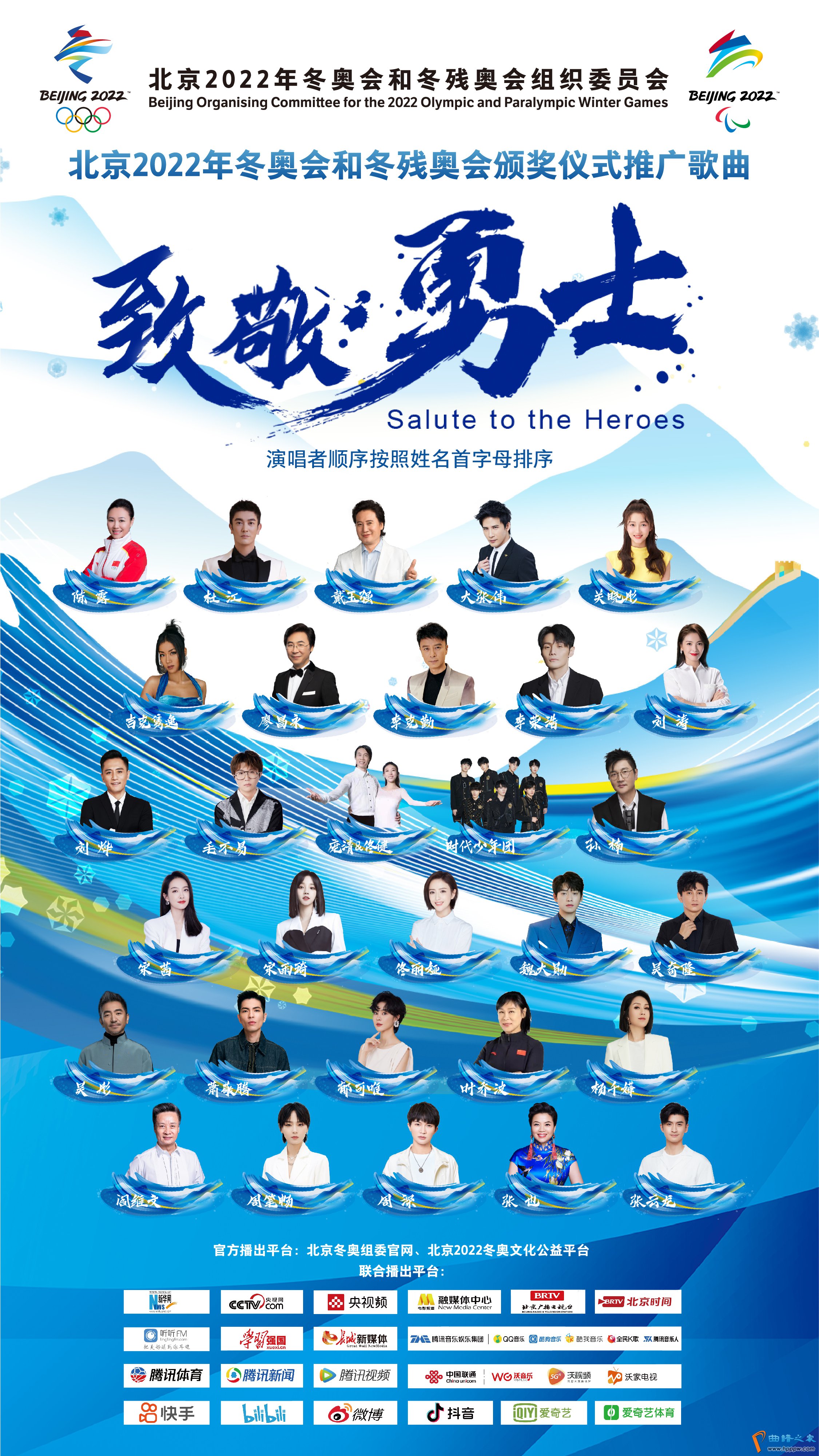 《北京欢迎你》曲作者小柯携手北京2022年冬奥会和冬残奥会,创作颁奖仪式推广歌曲《致敬勇士》。华语群星助阵,为赛场上热血拼搏的勇士们加油助威。