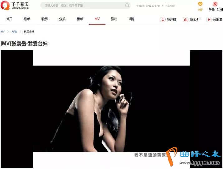 在文化部被禁的120首歌曲中,张震岳的《我爱台妹》MV依旧在“千千音乐”播放