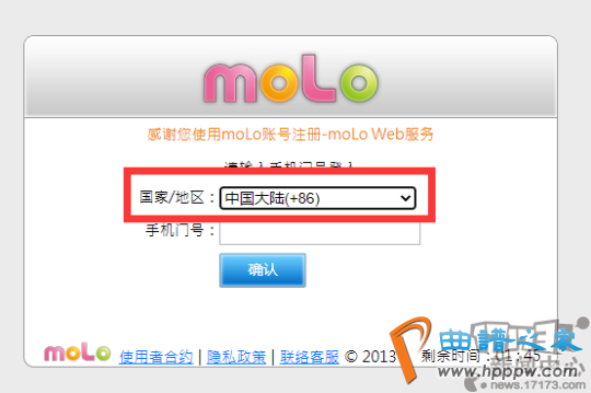 在注册页面,国家/地区选项中选择中国,然后再输入我们的手机号码点击确认。