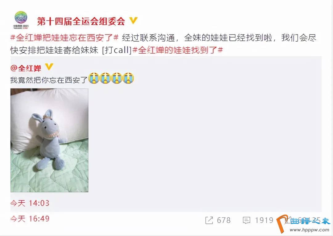 三个小时后,这场“找娃大战”终于圆满落幕,第十四届全运会组委会发文表示:“经过联系沟通,全妹的娃娃已经找到啦,我们会尽快安排把娃娃寄给妹妹。”