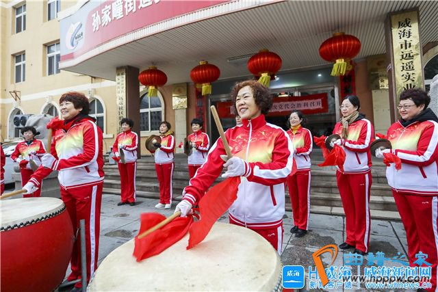 火红的鼓、响亮的锣、喜庆的笑容2月14日,在环翠区孙家疃街道安海社区,“巾秀锣鼓队”队员们身着队服,敲锣打鼓庆祝市第十六次党代会即将召开,现场气氛十分热烈。
