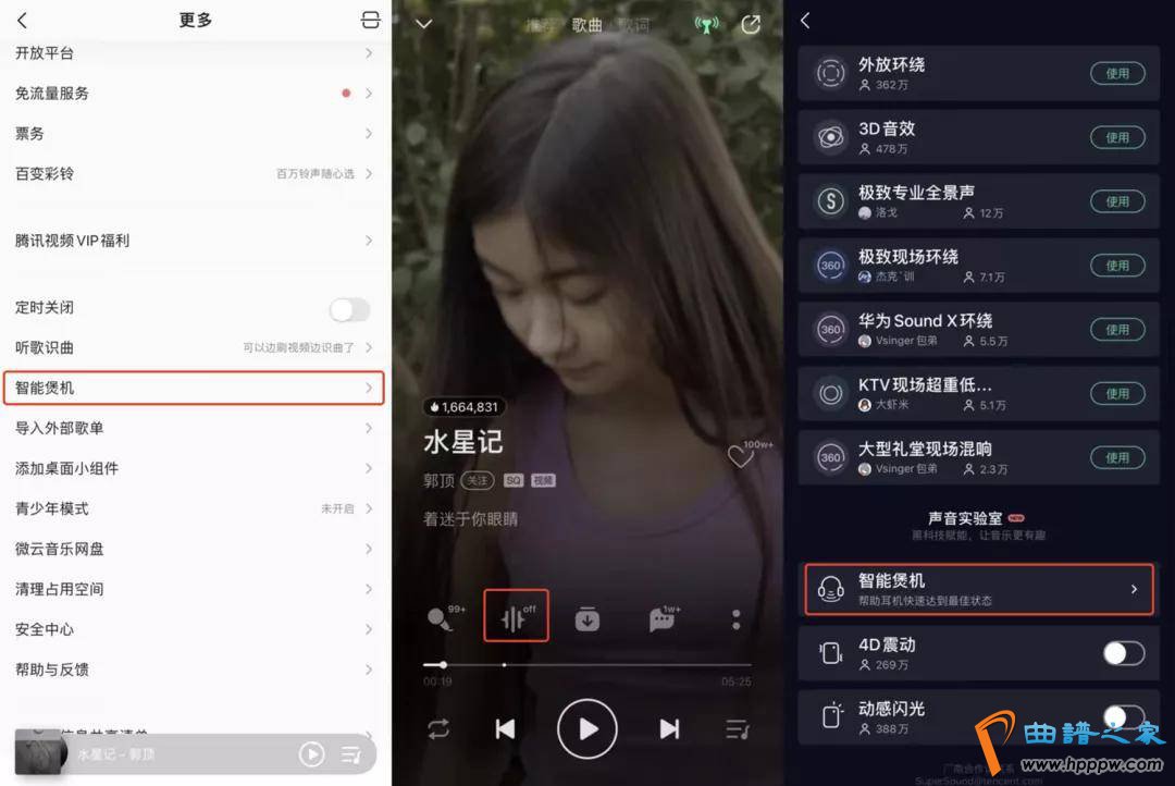 的智能煲机提供两个入口,可以从任意播放页,点击银河音效,在声音实验室中找到“智能煲机”。也可以在我的-更多中,进入该功能。