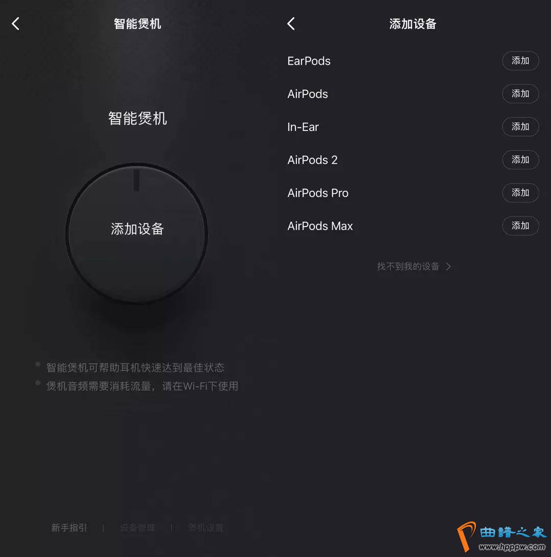 进入智能煲机后,需要选择你所使用的耳机品牌及型号,小黑不是耳机发烧友,本以为该功能与我无关,但小黑惊奇的发现里面竟然有“苹果小白兔耳机EarPods”,甚至还有AirPods。