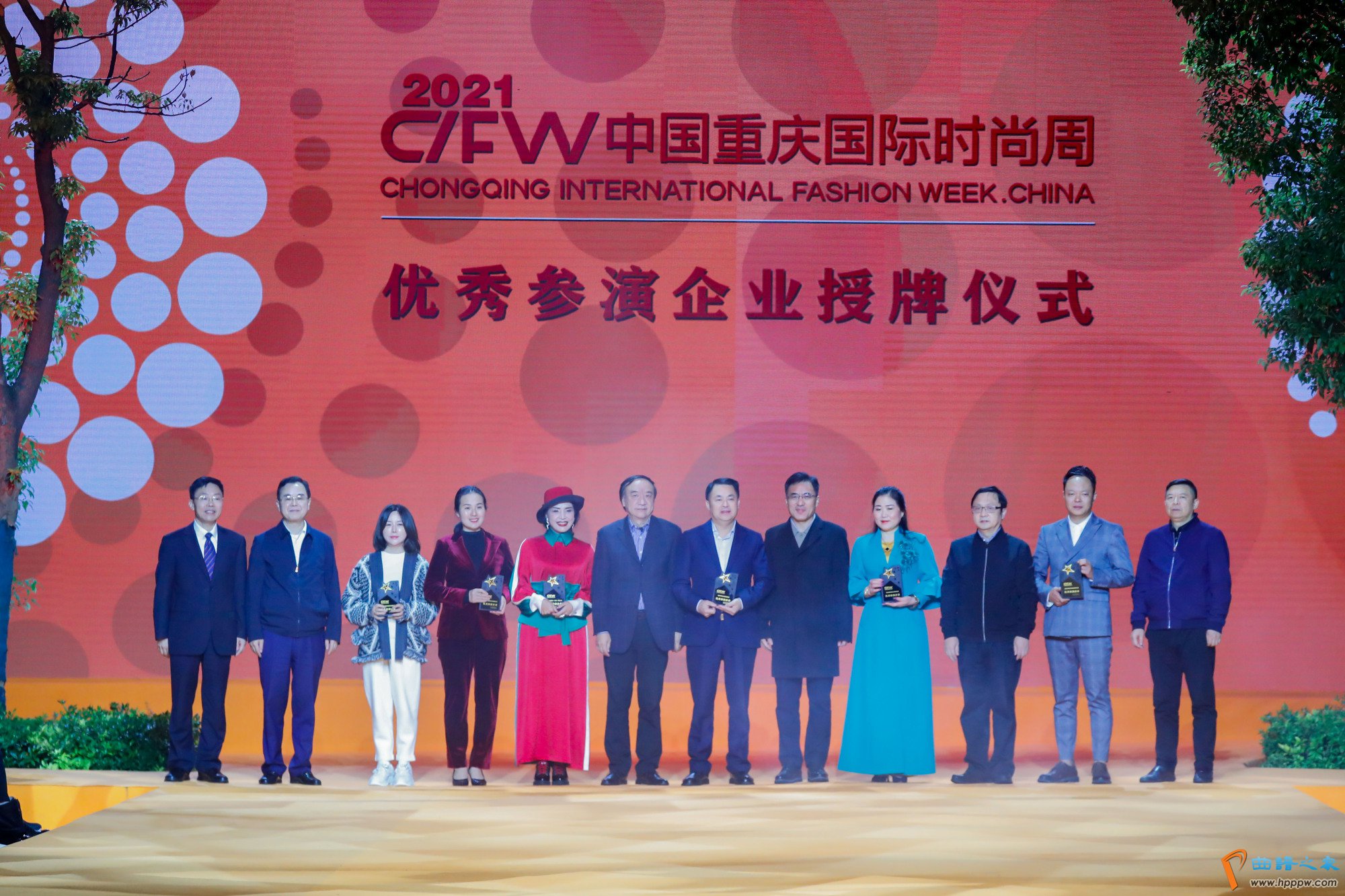盛典上,本届时尚周组委会向优秀参演企业举行了授牌仪式。出席活动的领导上台为重庆市渝北区服装商会、重庆森威服饰集团有限公司、重庆段氏服饰实业有限公司、重庆睿诚实业(集团)有限公司、重庆美昊源实业有限公司、重庆嘉禾利莎服饰有限公司颁发奖牌。
