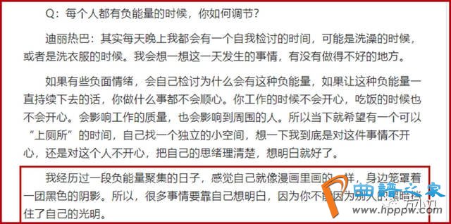 根据迪丽热巴采访时的说法,这应该是一个人身上出现了负能量、负面情绪,才会有这样的心态的。