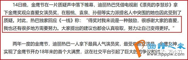 舆论漩涡中的迪丽热巴回应:“得奖对我来说是一种鼓励,很感谢大家喜爱,我还有很多地方需要努力。大家提出的建议我会认真吸取,努力让自己变得更好。”