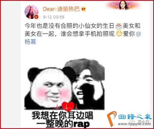 2015年,杨幂拍电影《我是证人》时,生病发烧,迪丽热巴第一时间送去问候,发了一段自己的唱歌视频,希望老板身体早日康复。