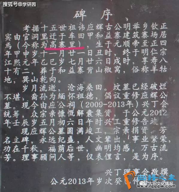 【对接】:“广东省长乐县”是现在的“广东省五华县”,这一点无需多解释,关键点是小地名“高堡寨”。遍查五华地名(网络搜索、古氏旧谱及其他文献古籍对照),都没有找到这一地名。初以为是华阳镇大拔村的“高寨下”、继以为是十五世祖应辉公开基地华阳镇莲塘埔“高寨里”、再以为是横陂镇的“高寨里”……,但这些与“古近宸”都没有任何关系。