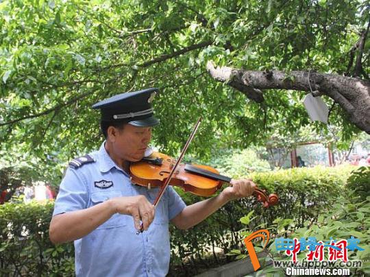 河南济源市一所中学的保安张光明大叔,拉得一手好提琴,毫无音乐功底的他用三年时间勤奋自学,目前能拉奏80多首曲子,不仅被师生们赞为“文艺范”保安,还成了学生们身边励志的榜样。&l