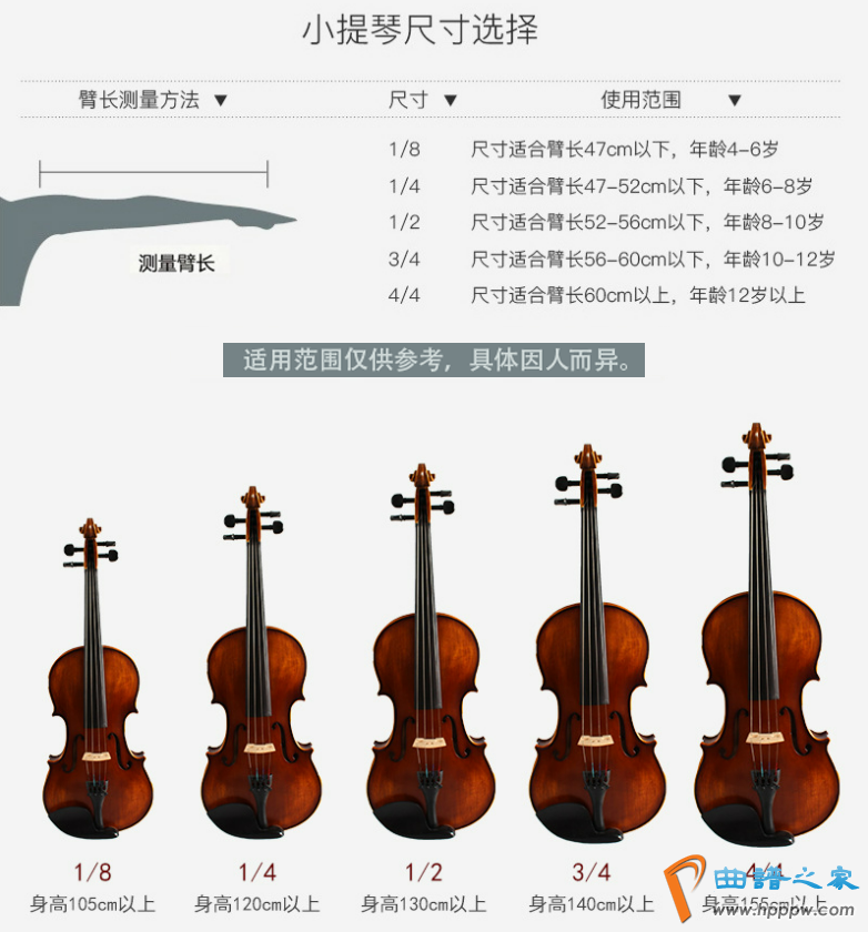 儿童选用什么规格的小提琴合适,应该根据儿童的身高、臂长和手指条件来确定。
