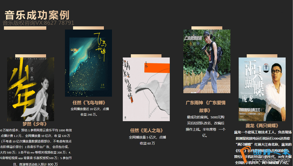 一个更极致的例子是被称为“洗歌第一人”的宋孟君。2016年,乐评人邓柯曾在微博上公开指出其歌曲《一厘米的距离》抄袭周杰伦的《夜曲》并且进行了刻意降重,此事在网络发酵一时后不了了之。2017年,宋孟君拉来投资组建公司云猫文化,以月发行30~60首的速度批量生产音乐,其署名为词曲、演唱或制作人的《学猫叫》《123我爱你》《让我做你的眼睛》《私奔》《李白》《一百万个可能》等均疑似抄袭同名原版歌曲。据自媒体“娱乐资本论”报道,该公司实行24小时工作制,利用实时舆论热点检测系统不间断地为歌曲生产捕捉热点词,从写歌到上线个小时。中国青年网的报道中则透露,2018年仅宋孟君个人歌曲在酷狗音乐的播放量就有9。2亿,下载量808万次,如果平均两元一首下载,可获得1600万的收益,其公司艺人有严格的KPI考核和打卡制度,工资十万保底,成绩好的可达数百万。