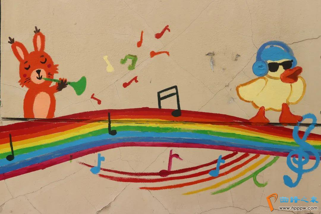 - “动物在五线谱上跳舞”这个小区的彩绘墙真亮眼!
