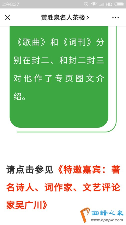 日前,中国主流娱乐圈流出惊世消息:中国“词圣”、中国词坛“掌门人”、中国歌坛的最强词人、亚洲歌坛金牌填词人钟奕勉不但转战曲坛成为著名作曲人,而且还受到著名词作家——吴广川先生的邀约,为其词作品谱曲(歌名暂保密)!更为激动人心的消息是:中国词坛“掌门人”钟奕勉为吴广川先生所谱的曲获得了吴广川先生的极高认可、极高赞誉与极高评价:“很好。这正是我心中的旋律。”