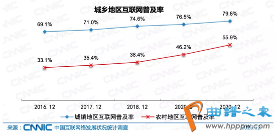 我国在上一轮的信息基础设施建设中,建成了全球规模最大的光纤网络和4G网络,全国范围内行政村通光纤和通4G比例双双超过98%,基本实现城乡“同网同速”;农村网民规模达到3.09亿,农村地区互联网普及率达到55.9%。由硬件条件差距导致的数字鸿沟以肉眼可见的速度在收窄。