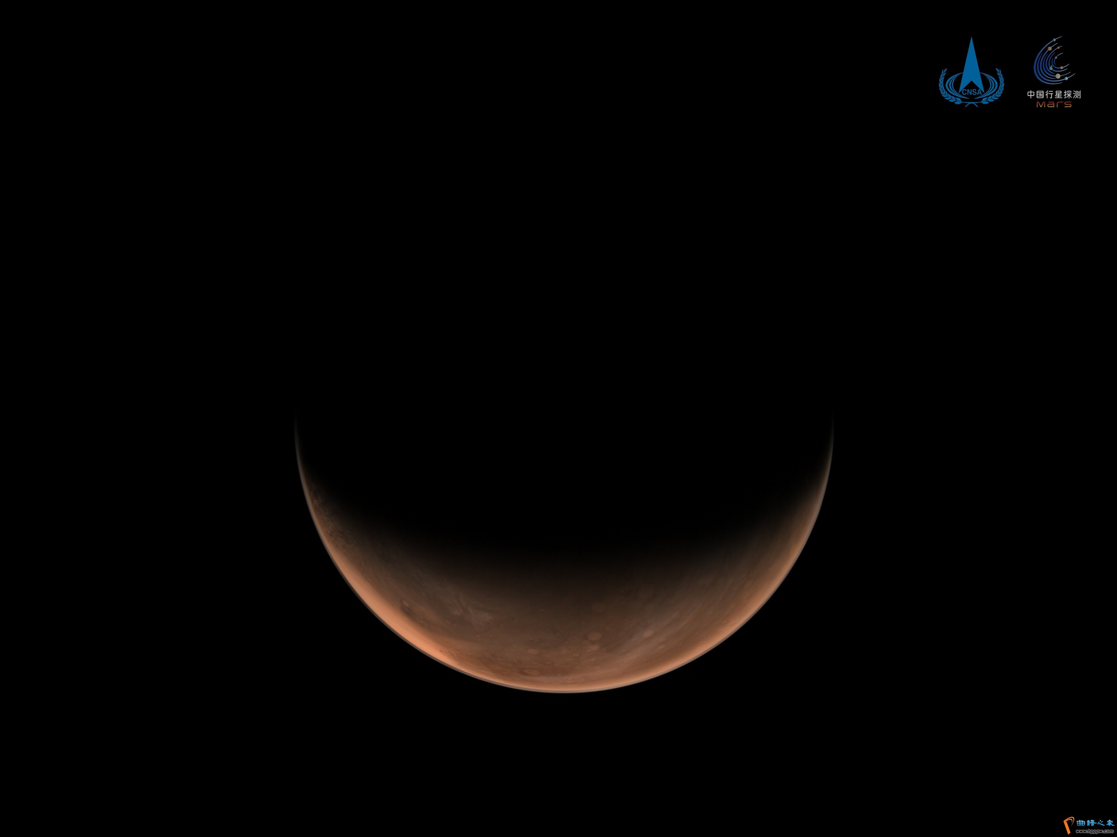 NO.10 3月26日,国家航天局发布2幅由我国首次火星探测任务天问一号探测器拍摄的南、北半球火星侧身影像。图像中,火星呈“月牙”状,表面纹理清晰。天问一号探测器飞行至距离火星1.1万千米处,利用中分辨率相机拍摄了火星全景。此时,由于探测器处于火星侧后方上空(以面向太阳为前方),得到两幅“侧身”影像。 目前,天问一号探测器已经在停泊轨道运行一个月,高分辨率相机、中分辨率相机、矿物光谱仪、火星能量粒子分析仪、离子与中性粒子分析仪、磁强计等载荷陆续开机,对火星开展探测,获取科学数据。(人民日报)