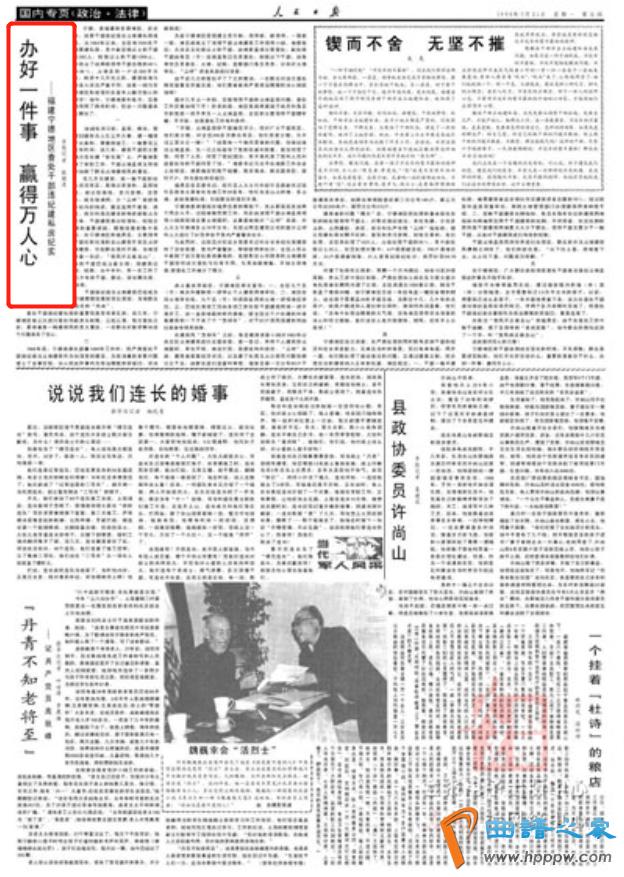 一段时任宁德地委书记习近平在地委工作会议上的讲话,被刊登在1990年5月21日《人民日报》题为《办好一件事 赢得万人心》的通讯中,赞扬宁德地区在清理干部违纪违法占地建私房中所体现出的“一竿子插到底”的精神。