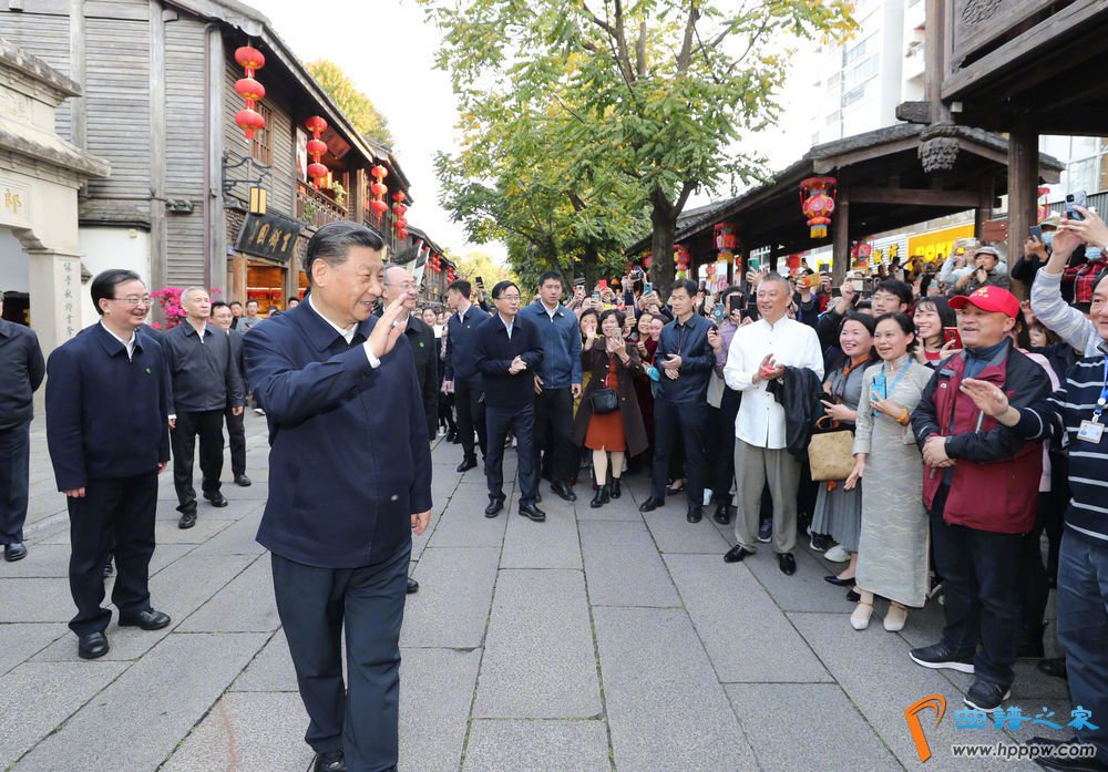 2021年3月24日下午,习近平总书记在福建福州三坊七巷历史文化街区考察时,向游客和市民招手致意。新华社记者 鞠鹏 摄