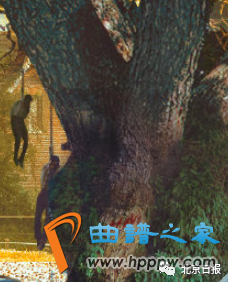 细节三:树干上鲜红的“HM”