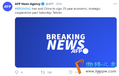 法新社刚刚消息,伊朗外交部发言人哈提卜扎德表示,伊朗和中国将在周六签署一项为期25年的合作协议。