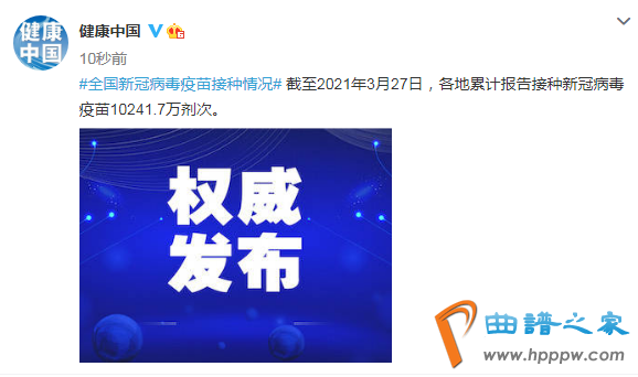 据国家卫健委消息,截至2021年3月27日,各地累计报告接种新冠病毒疫苗10241.7万剂次。 ????