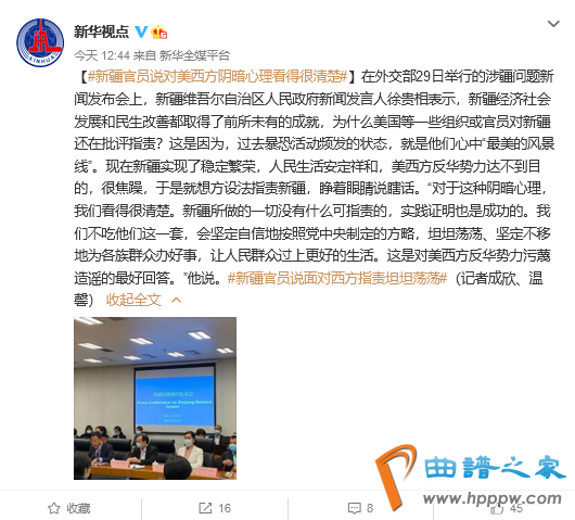 新疆官员向HM喊话:擦亮眼睛 西方在种族问题上集体失忆~