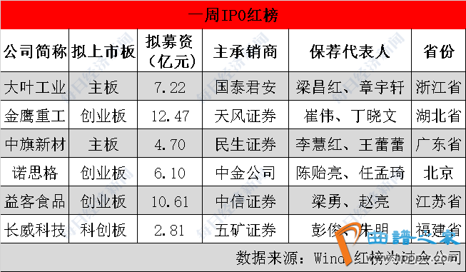 红榜:诺思格、大叶工业、金鹰重工等6家公司过会