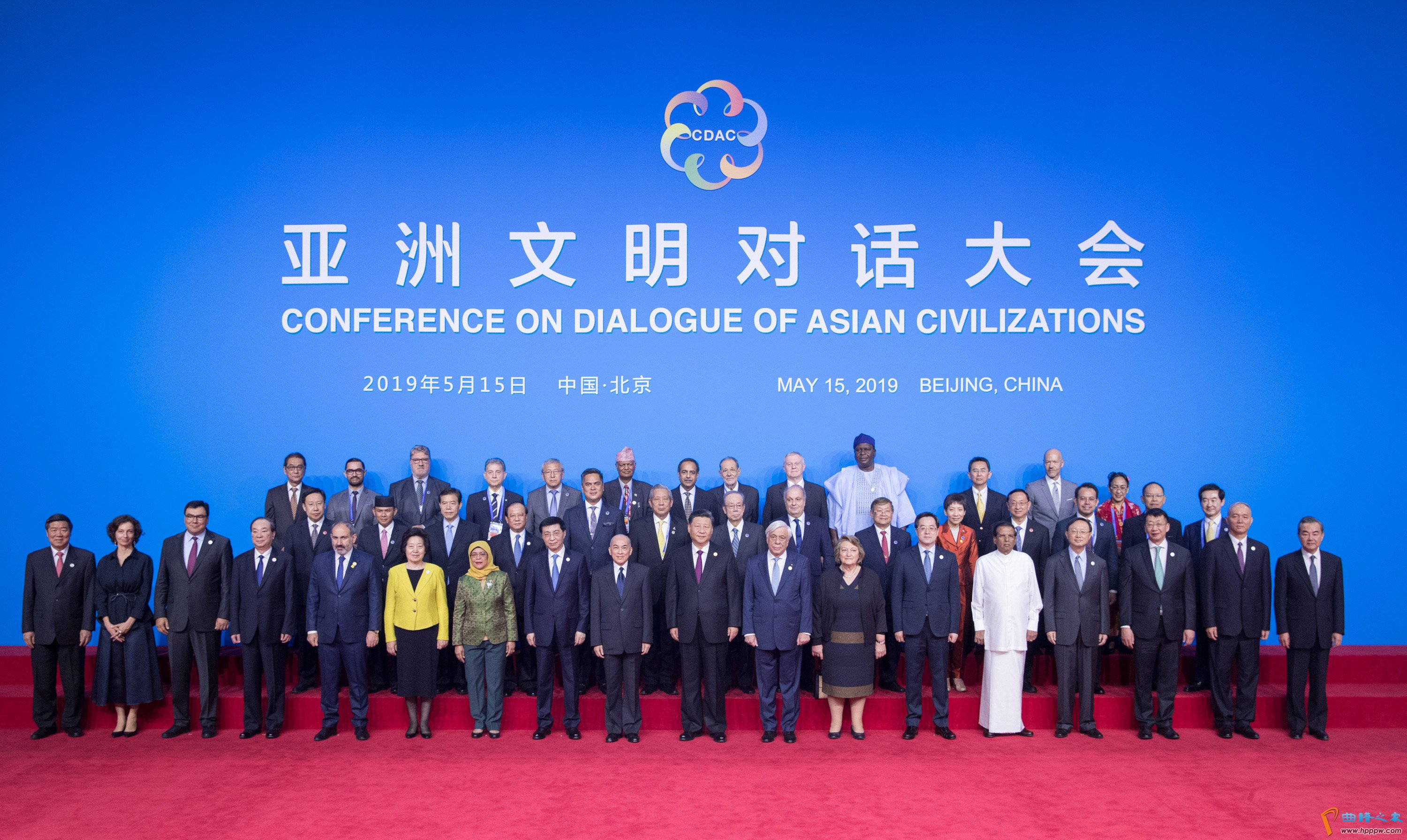 2019年5月15日,习近平出席亚洲文明对话大会开幕式并发表主旨演讲。开幕式前,中外领导人同出席开幕式的重要嘉宾代表合影留念。