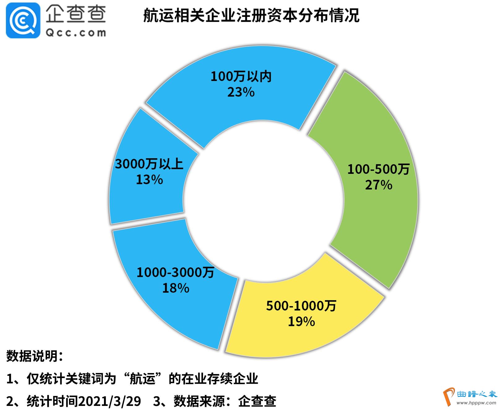 从注册资本来看,企查查数据显示,我国有五成的航运相关企业注册资本集中在500万以内,其中23%的企业注册资本在100万以内,27%的企业注册资本在100万-500万这个区间,而注册资本在3000万以上的则占总量的13%。