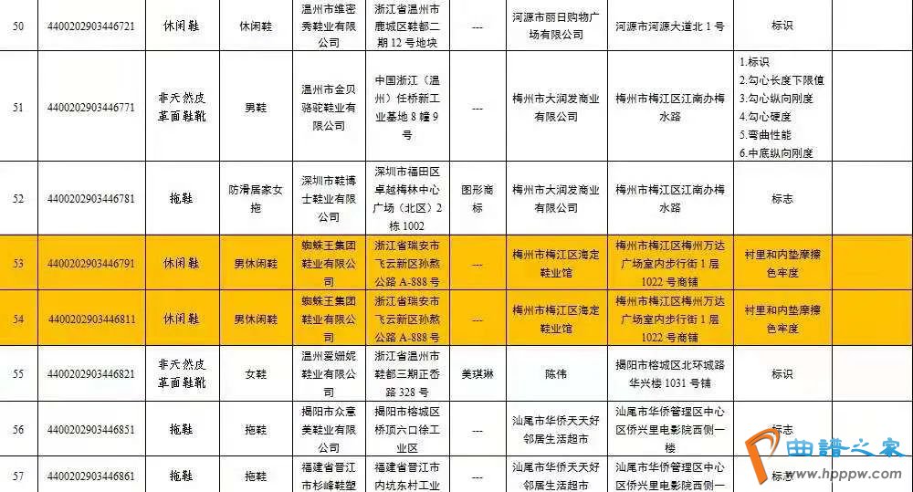 “蜘蛛王集团鞋业有限公司”生产的两批次“男休闲鞋”,因“衬里和内垫摩擦色牢度”上了质量黑名单。摩擦色牢度反映鞋在穿用时的褪色程度。该指标不合格,鞋类衬里和内垫容易褪色,沾染到裤子、袜子与皮肤。