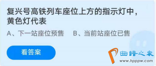 复兴号高铁列车座位上方的指示灯中黄色灯代表?这是支付宝蚂蚁庄园4月8号今日庄园小课堂的问题,很多用户还不知道答案,本文小编会为大家详细介绍4月8日今天蚂蚁庄园课堂小鸡饲料答案。