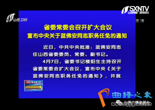 4月7日晚《山西新闻联播》发布消息:近日,中共中央批准:蓝佛安同志任山西省委委员、常委、副书记。